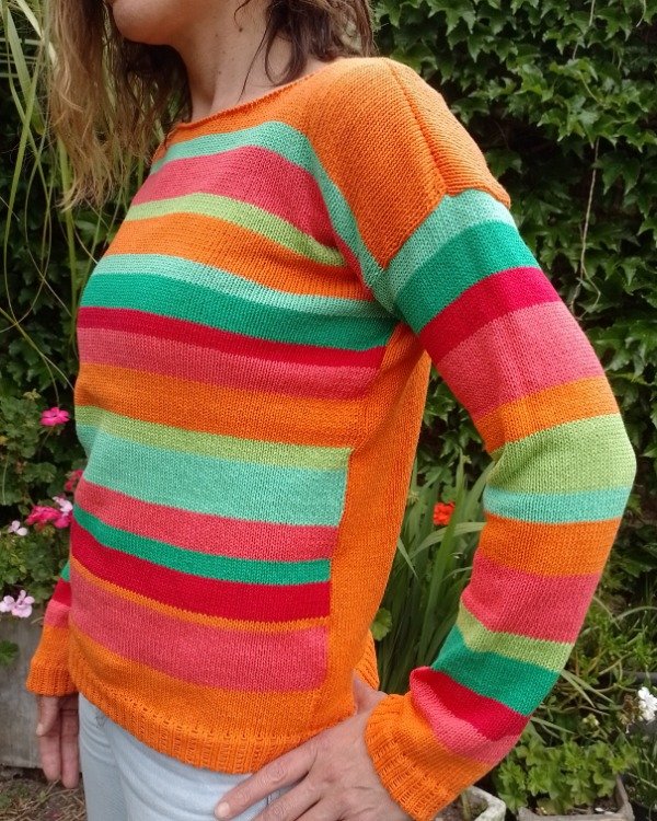 Tené en cuenta que el hilo de algodón natural, tiende a tomar unos 2 cm aprox. en el primer lavado. Mirá más en *cuidado de las prendas*