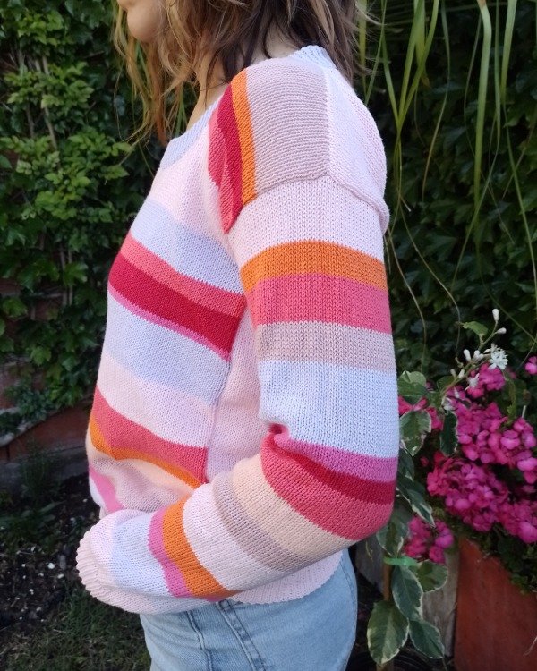 Tené en cuenta que el hilo de algodón natural, tiende a tomar unos 2 cm aprox. en el primer lavado. Mirá más en *cuidado de las prendas*
